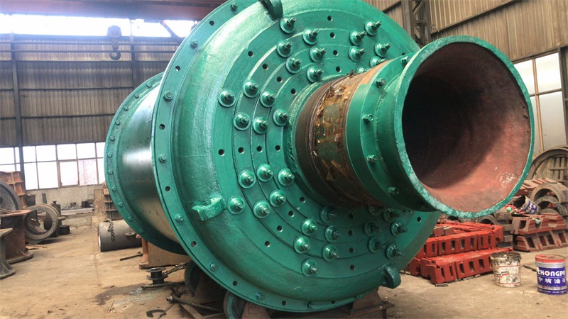 溢流型球磨機筒體用厚度15-36mm的鋼板焊接而成,在筒體的兩端焊有鑄鋼制造的法蘭盤,用螺栓將端蓋2和3與法蘭盤連接在一起,二者須精密加工和配合,因為承載磨礦機質(zhì)量的中空軸頸焊在端蓋上。在筒體上開有1-2個人孔,供檢修和更換襯板用。筒體和端蓋內(nèi)部敷設有襯板5。端蓋上的中空軸頸支承在主軸承4上。主軸承常用的是滑動軸承,其直徑很大,但長度很短。軸瓦用巴氏合金澆鑄,與一般滑動軸承不同之處在于僅僅下半部有軸瓦。整個軸承除軸瓦用巴氏金澆鑄外,其余用鑄鐵制成。由于球磨機的跨度和載荷很大,將發(fā)生一定程度的撓曲,而且制造和裝配的誤差也難以保證準確的同心度,因此主軸承制成自動調(diào)心滑動軸承,為防止軸瓦轉(zhuǎn)位過大而從軸承座中滑出,在軸承座與軸瓦的球面***放一圓柱銷釘。